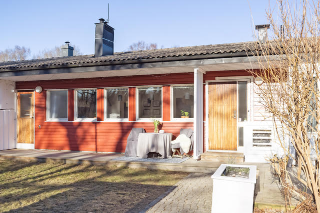 Välkomna till detta smakfullt renoverade radhus i Skogome!