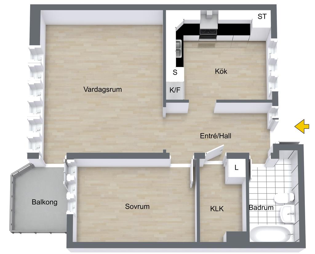 Väl tilltagen bostad om 2rok med balkong i västerläge och hiss direkt från markplan!