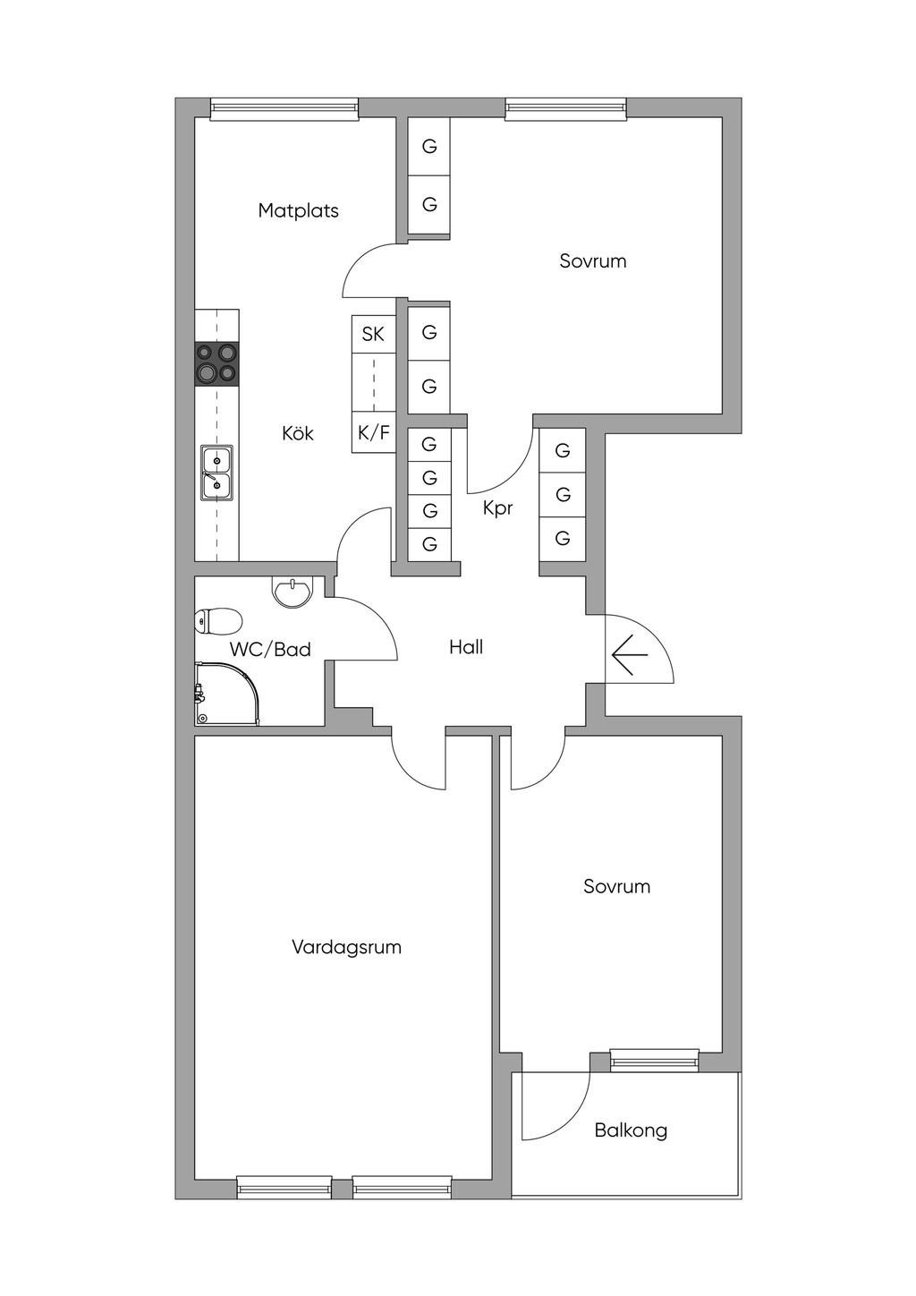 Högst upp på Kevingeringen 23 finns den trevliga 3:a med balkong.