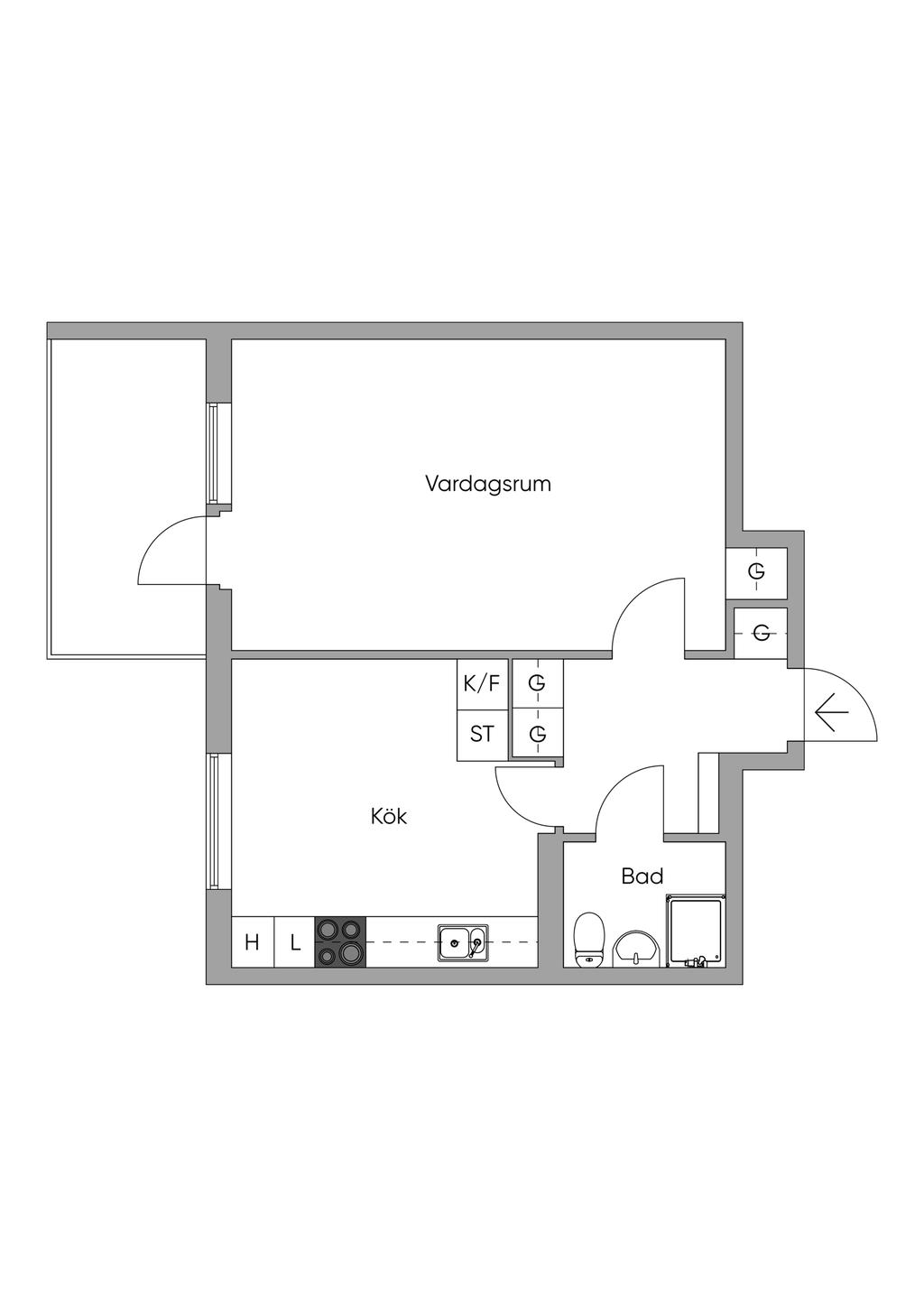 Ljus & rymlig 1 rok med balkong – 44,5 kvm