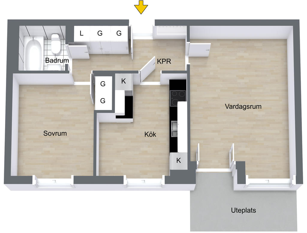 Ljus och trivsam 2:a med mysig uteplats på bottenplan!
