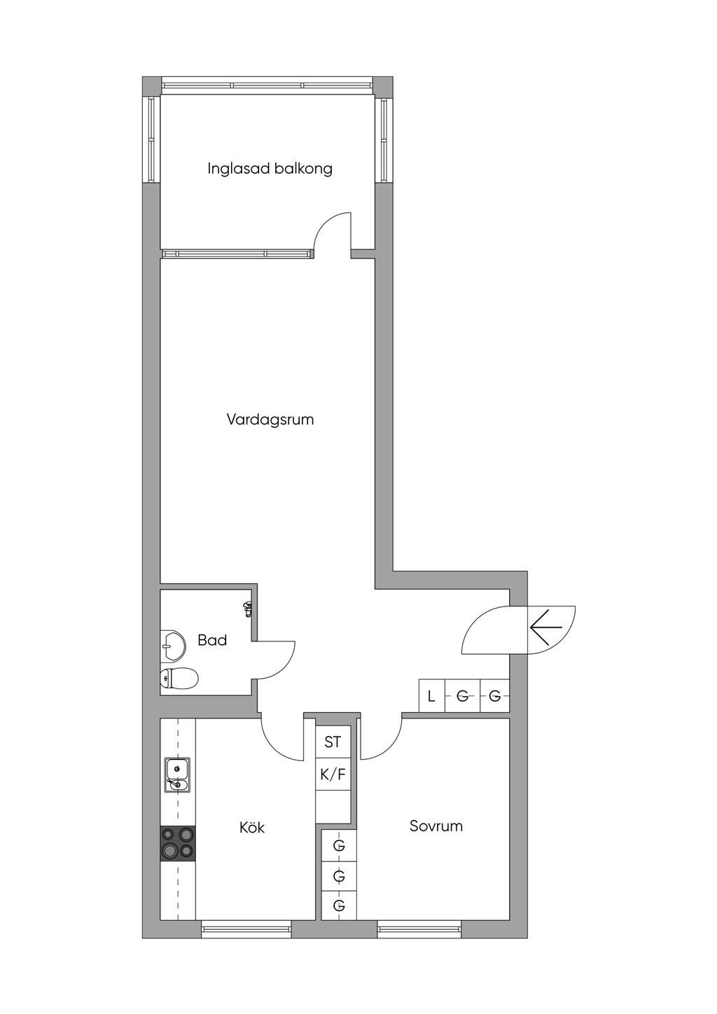 Tvåa med trevlig planlösning och stor inglasad balkong