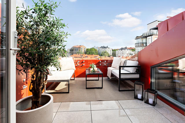 Lyxig vindslägenhet med generös terrass och noggrant utvalda material med standard i toppklass.