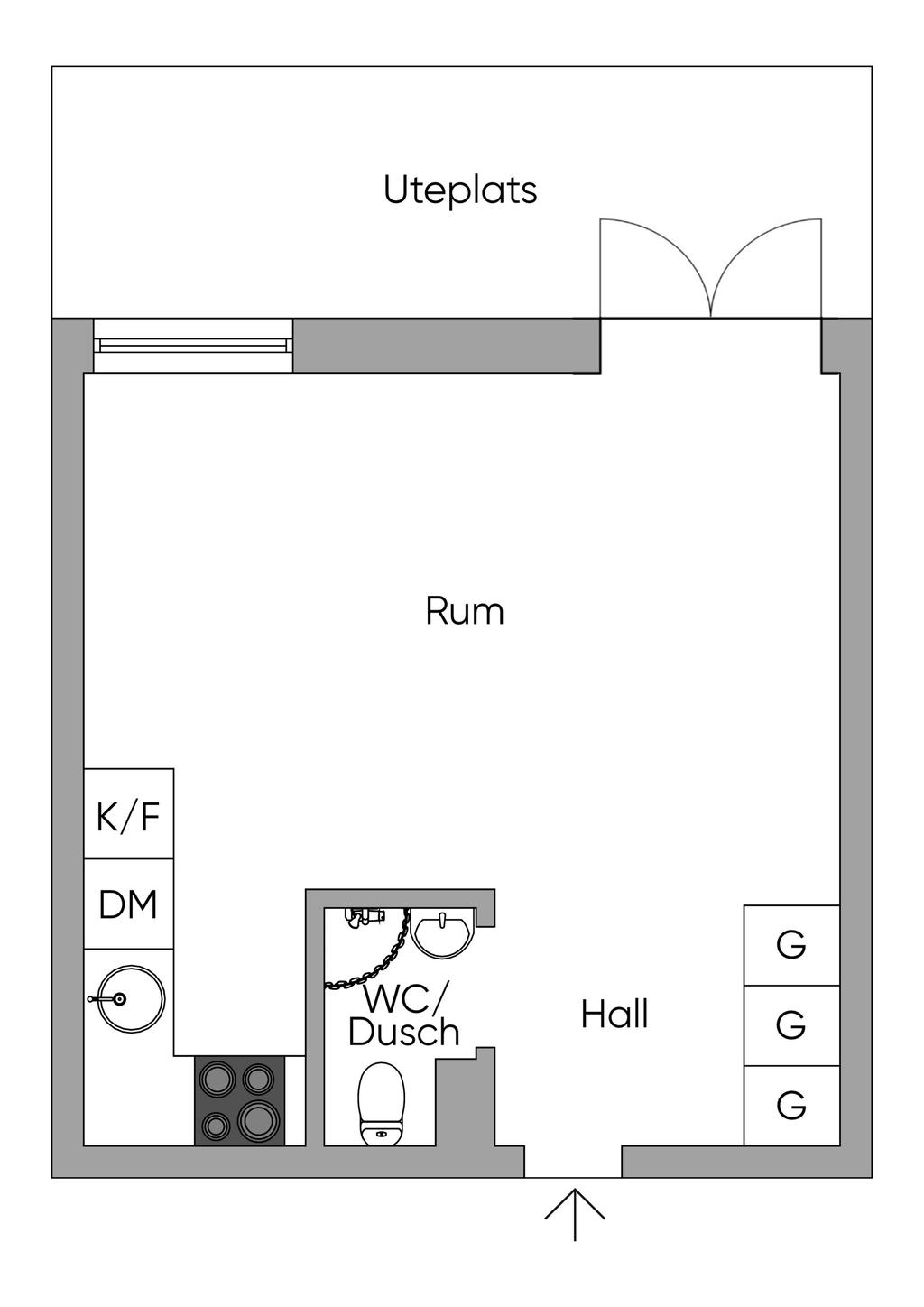 Välplanerad och unik 1:a med stor uteplats om ca 15m2.