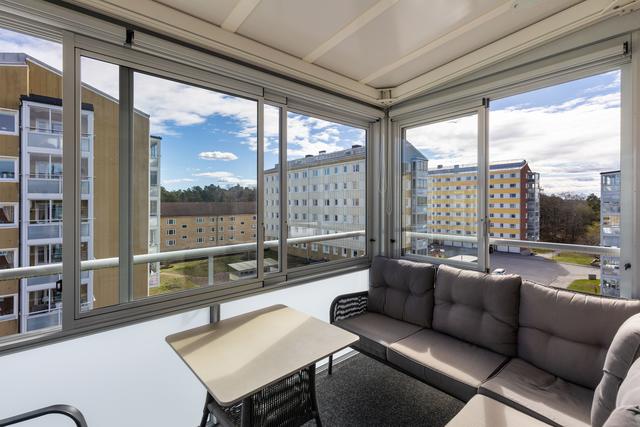Fin 3:a med låg avgift och inglasad balkong högst upp i huset!