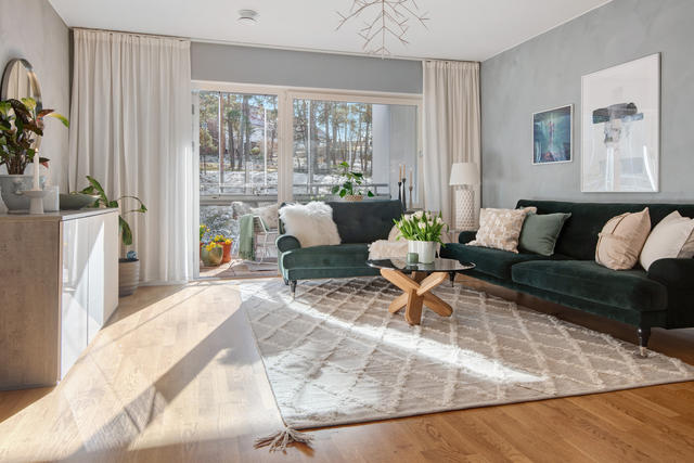 Modern och ljus trea med balkong i naturskönt läge - ostört - hiss - ledig garageplats