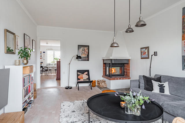 Modern och trivsam tvåa högst upp i huset med öppen spis!