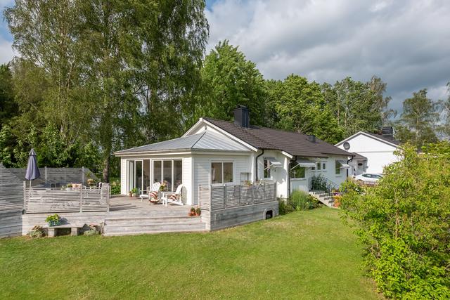 Friliggande enplansvilla med källare, garage och inglasad altan på lugn återvändsgata