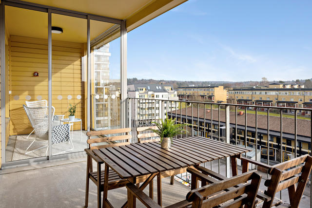 Ljus trea högst upp i huset! Balkong i fritt söderläge!