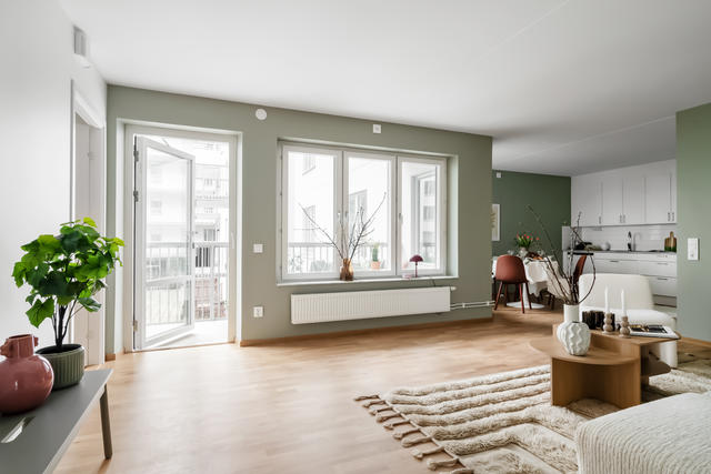 Fridfullt och fritt läge i huset med härlig balkong mot innergården!