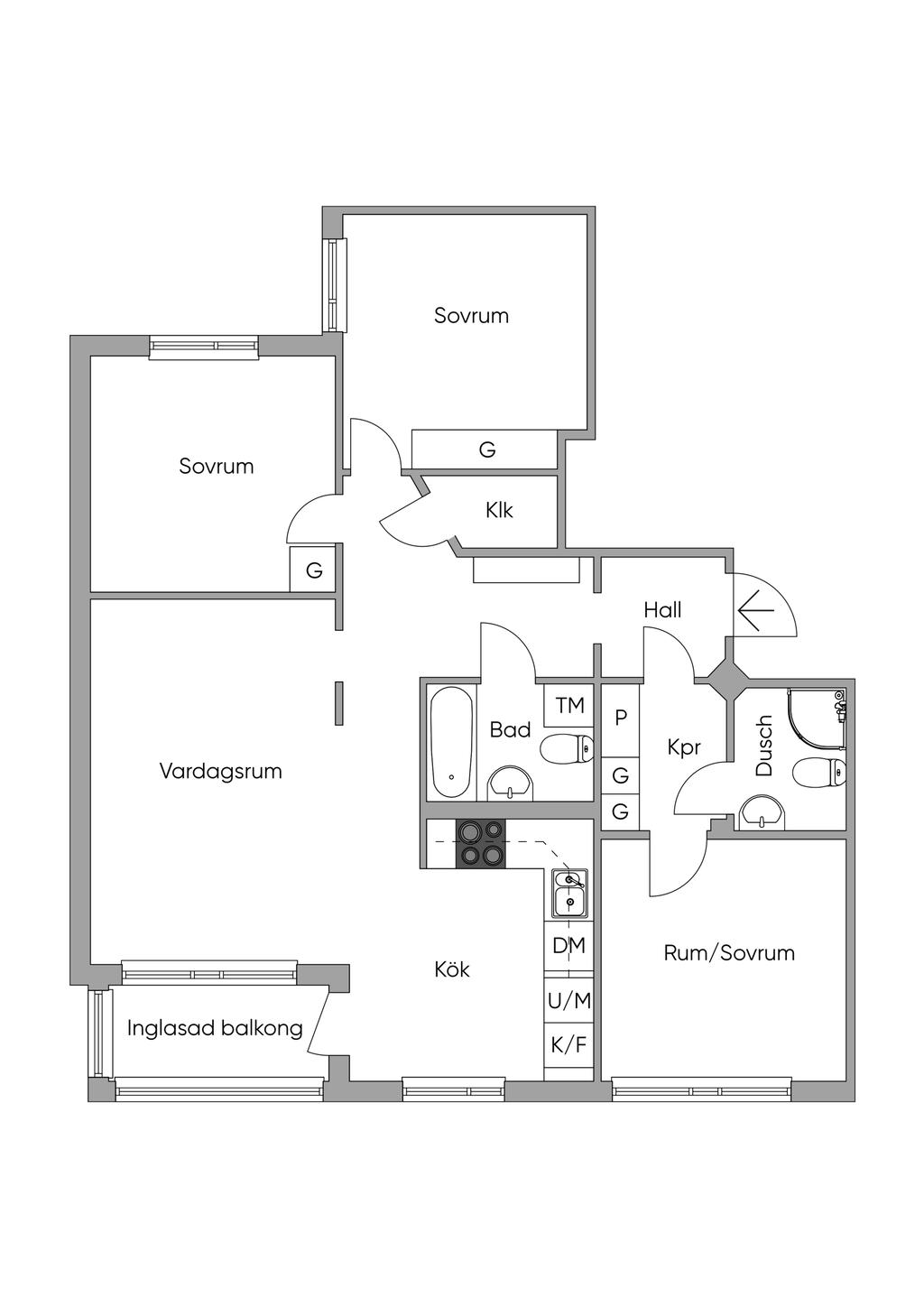 Välplanerad 4.a med inglasad balkong och uthyrningsdel med egen ingång