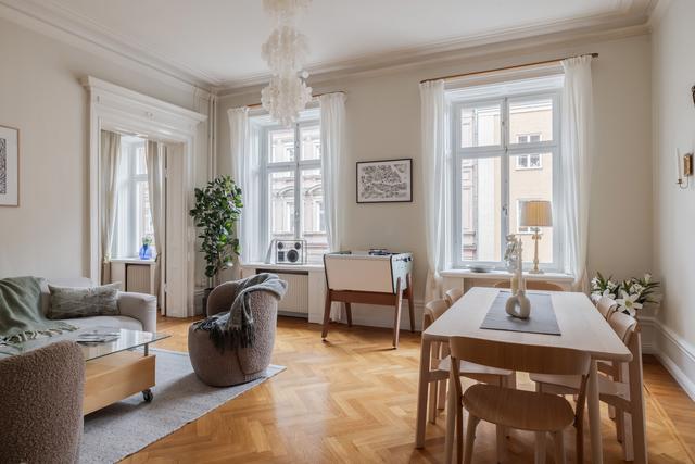 På attraktiv adress i Lärkstaden ligger denna 3:a med balkong. Möjlig 4:a. Lågt belånad BRF.