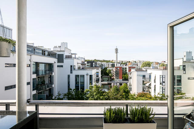 VINDSVÅNING MED TERRASS I SYDVÄSTLÄGE - TOPPRENOVERAD - HÖGST UPP MED SJÖUTSIKT