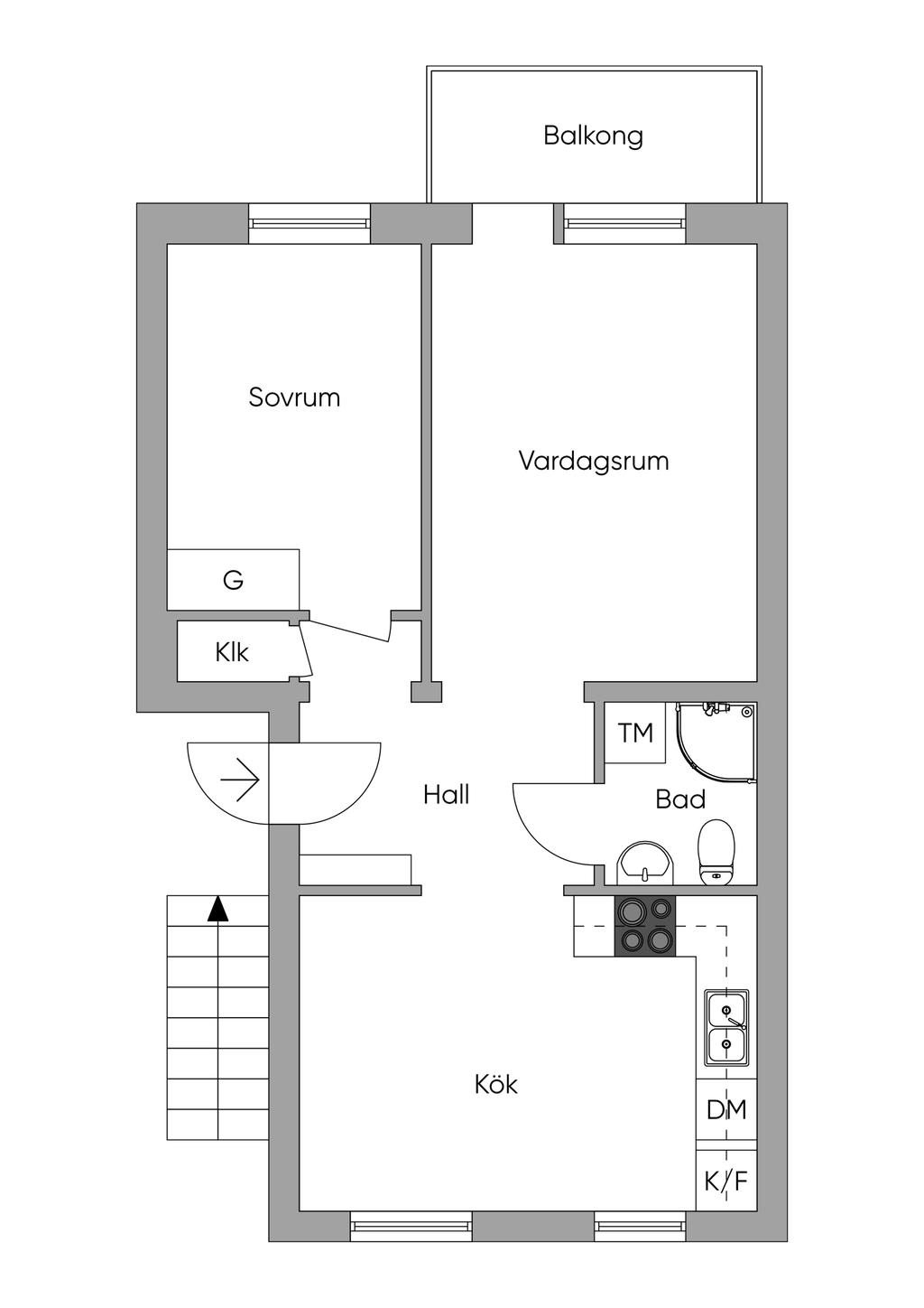Renoverad lägenhet på första våningen