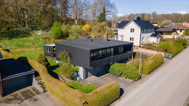 Arkitektritad vinkelvilla i eftertraktade Mariebo – charm och originaldetaljer i harmoni