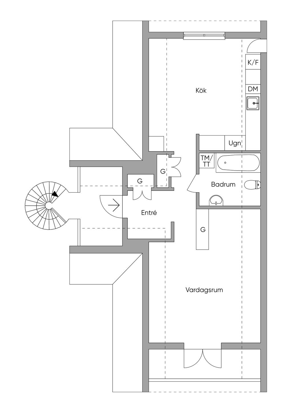 Unik lägenhet med fantastisk takhöjd upp i nock!