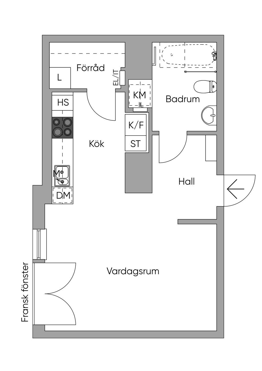 Välplanerad 1:a med fransk balkong mot mysig innergård!