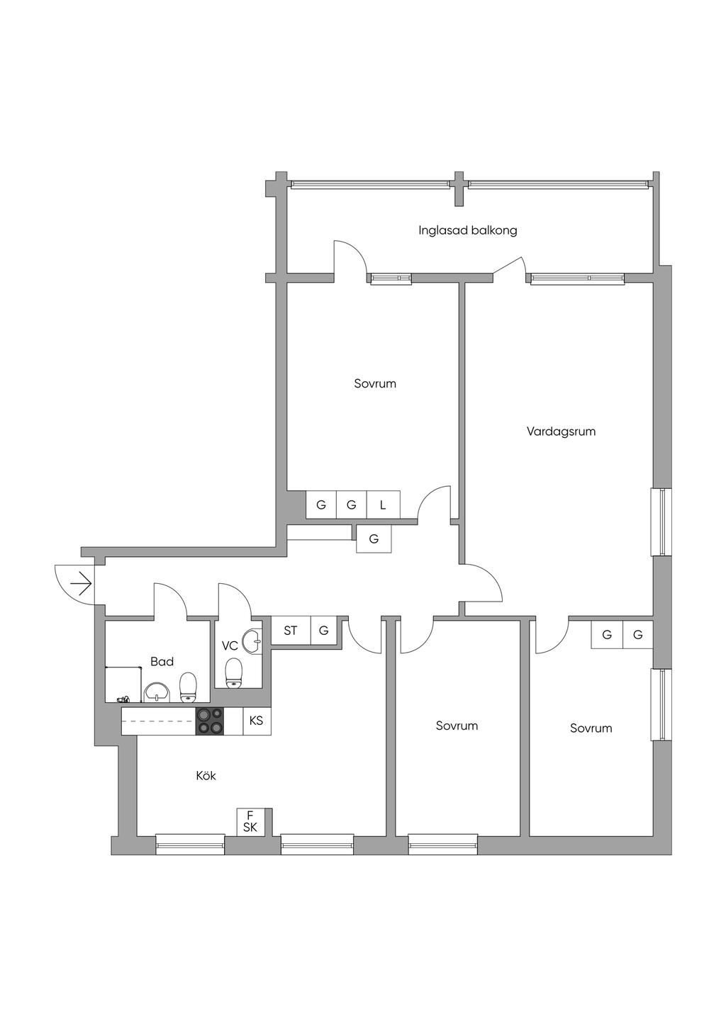 Gavelfyra utrustad med en stor inglasad balkong med stor potential!