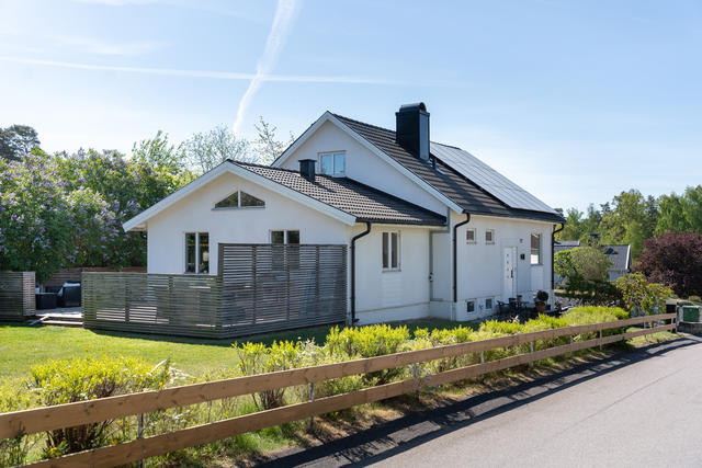 Familjevänlig villa nära stan – stilrent hus med hörntomt och solceller