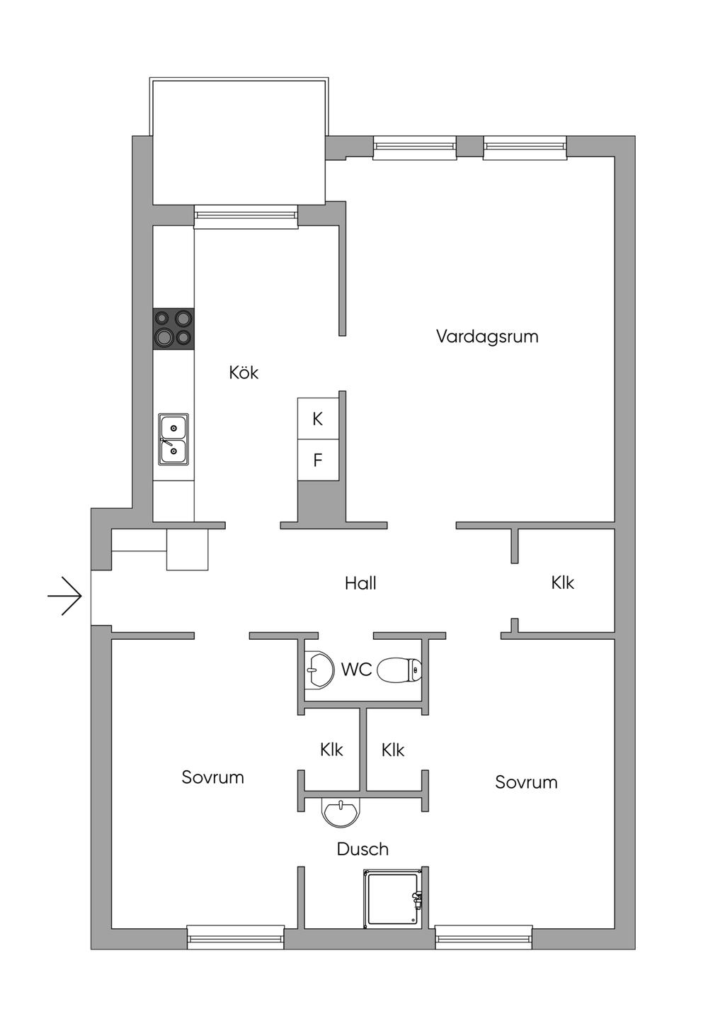 Välplanerad 50-tals 3:a med stor inglasad balkong i soligt söderläge!