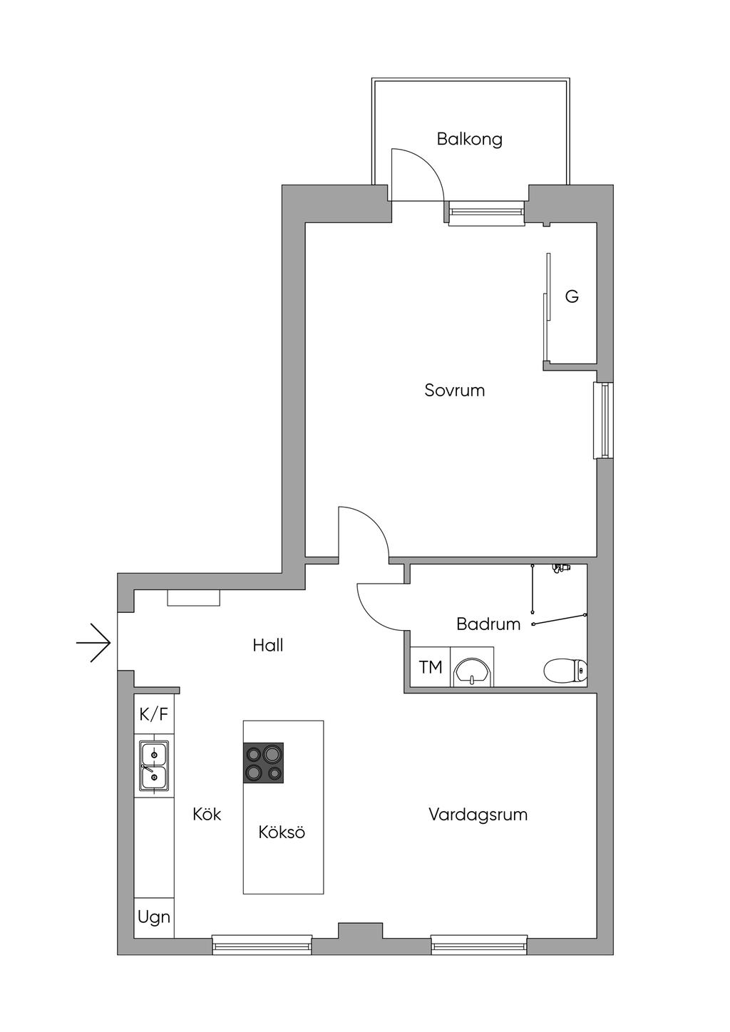 Stilfullt renoverad 2:a med exklusivt kök, öppen planlösning och solig balkong!
