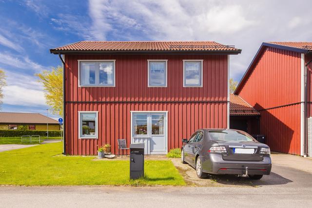 Välplanerat kedjehus i 1½-plan på hörntomt i barnvänliga Majåker – insynsskyddat med grönområde som