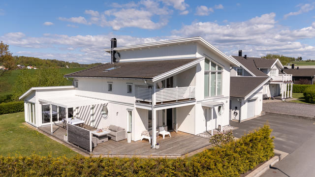 Stilrent hem med sociala ytor, härlig utemiljö och härligt ljusinsläpp – perfekt för hela familjen
