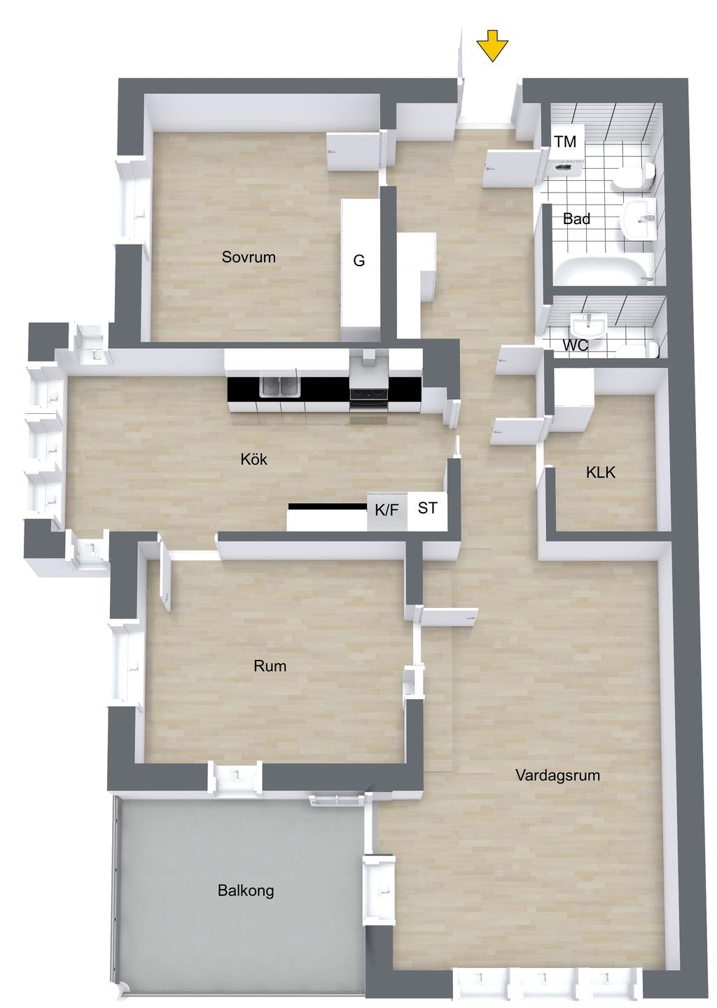 55+boende - 3:a på våning 2 men inglasad balkong i Brf Skogsblomman