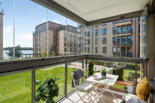 Rymlig lägenhet med Inglasad balkong och viss sjöutsikt!