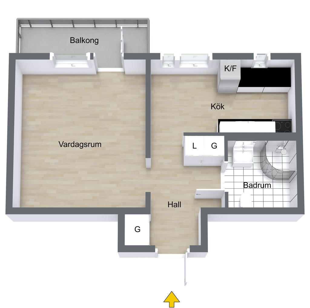 Charmig etta med renoverat kök och stor balkong i attraktiva Svartbäcken