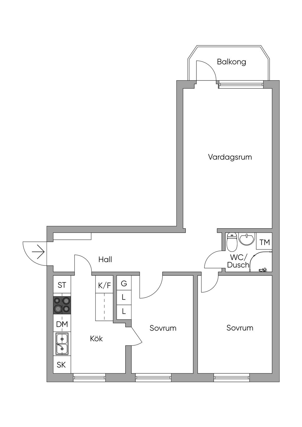 Ljus, fin och genomgående 3:a. Balkong med kvällssol. Lugnt och attraktivt område, Oppeby Nyköping