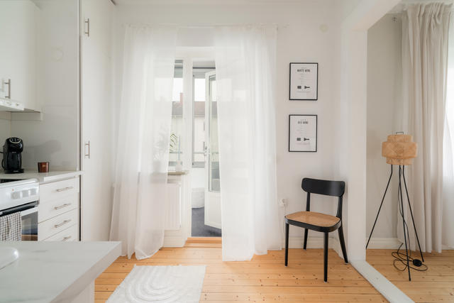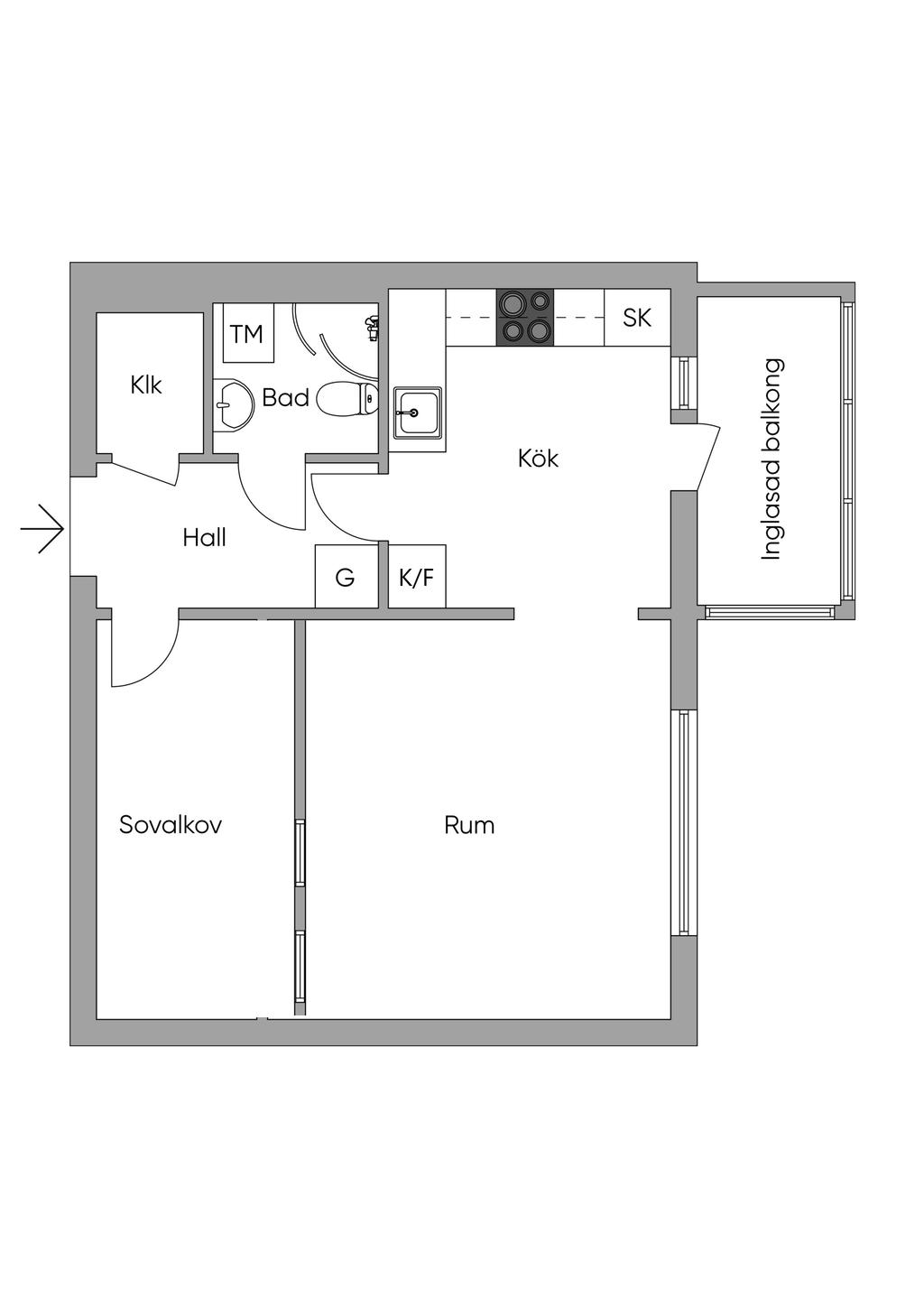 Välplanerad lägenhet med separat sovdel, inglasad balkong och parkeringsplats