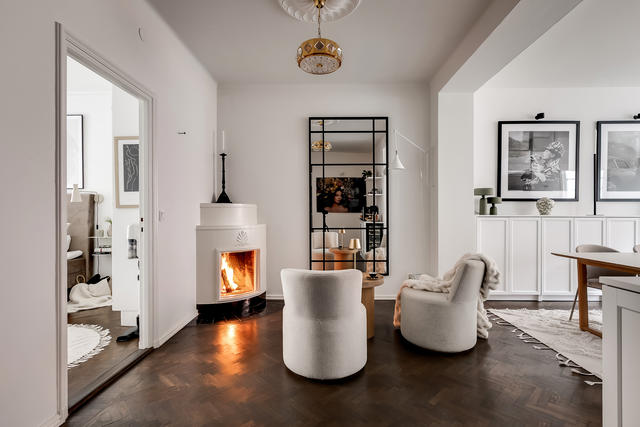 Elegant 30-talsdröm med burspråk, öppen spis, balkong – och nyligen stambytt badrum.