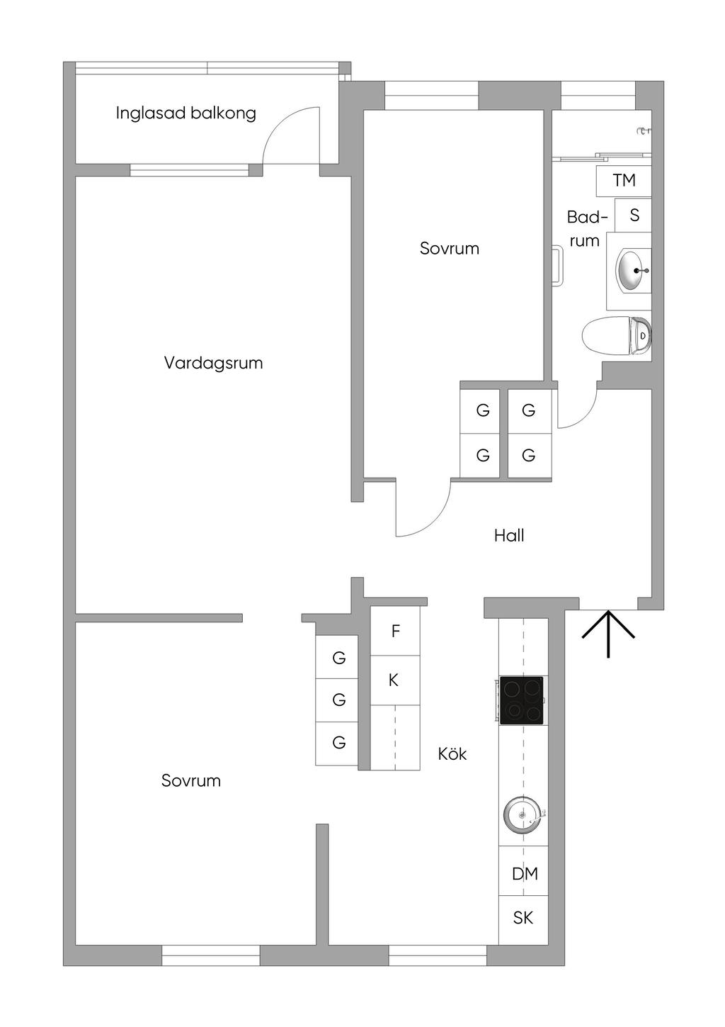 Välplanerad trerumslägenhet om 74,3 kvm med inglasad balkong