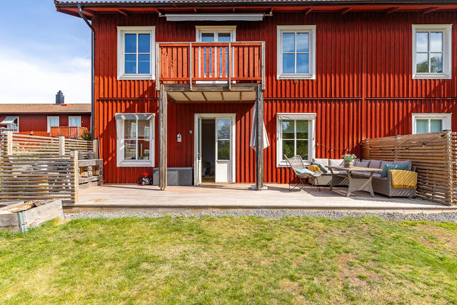 Trerums lägenhet med solig uteplats i markplan på Hovshaga