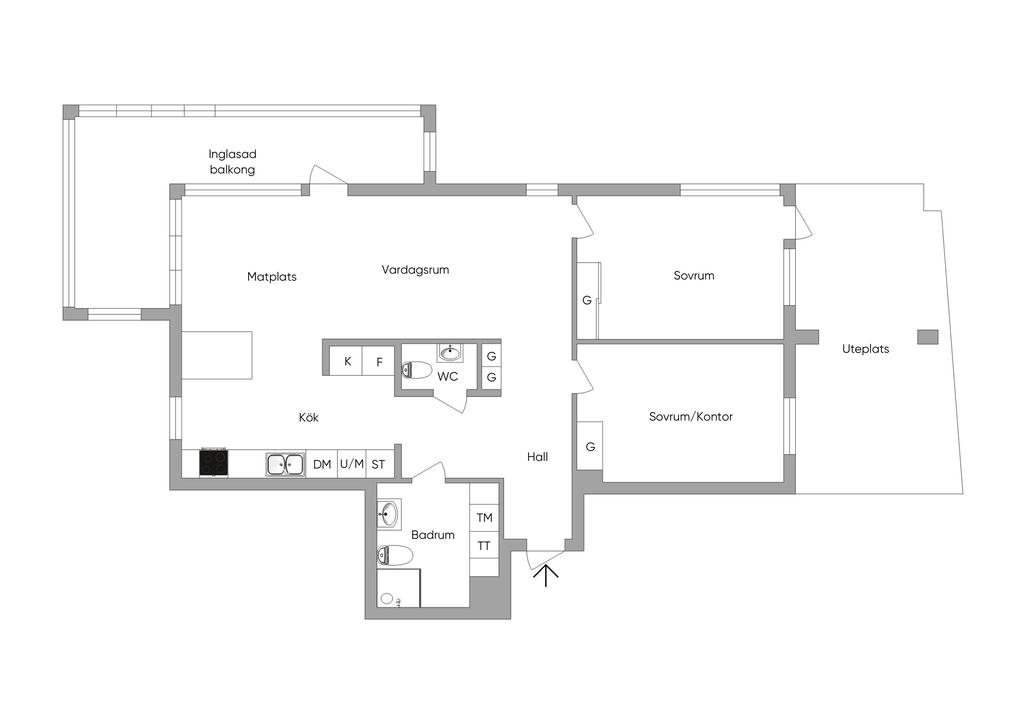 Ljus och stilfull trea med både uteplats och inglasad balkong
