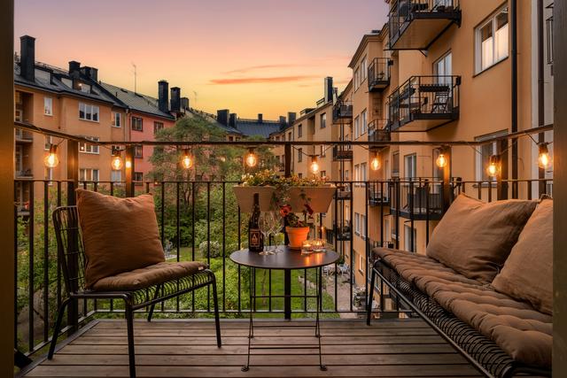 Välkommen till detta stilfulla hem med dubbla balkonger på attraktiv adress!