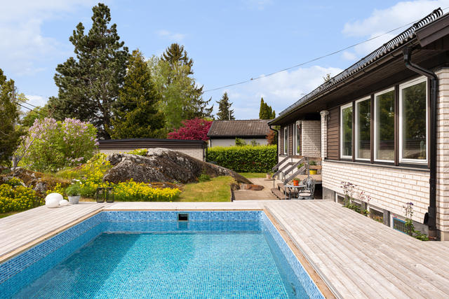 Renoverad familjevilla med pool, bergvärme i fint läge på populära Fornudden