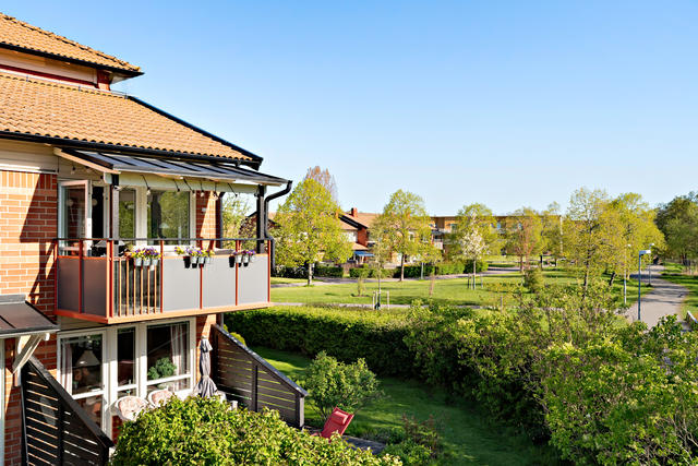 5a i tre plan med radhuskänsla, balkong, utsikt över Kungsbackaån och ett fint gavelläge i Kolla!