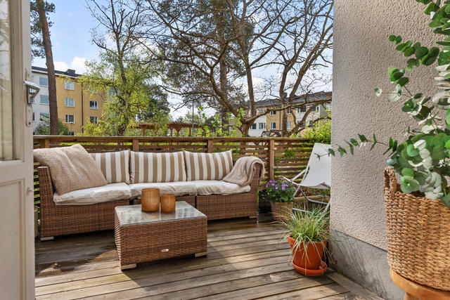 Välplanerad etta med låg avgift och solig uteplats i grönskande omgivning!