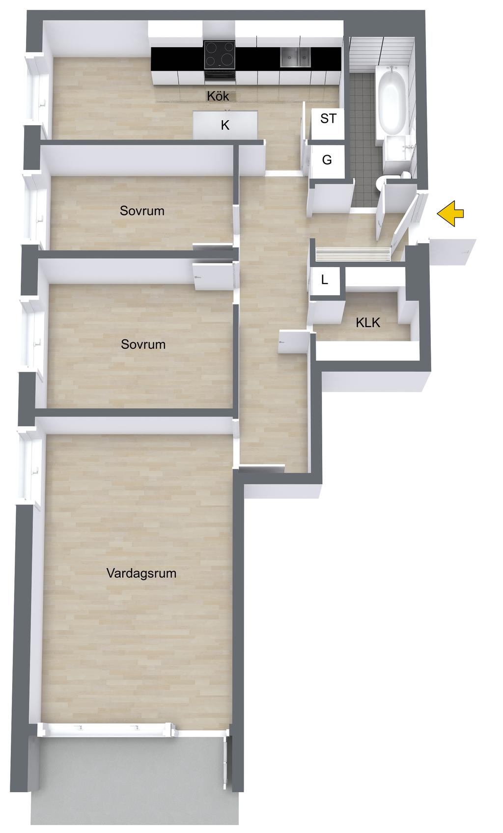 Utsikt och balkong i soligt sydvästläge – stor 3:a med stor potential!