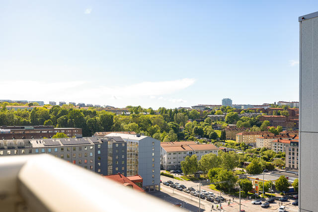 Högst upp i huset på våning 12 av 12 finns denna fina etta med sovalkov. Stor balkong med kvällssol!