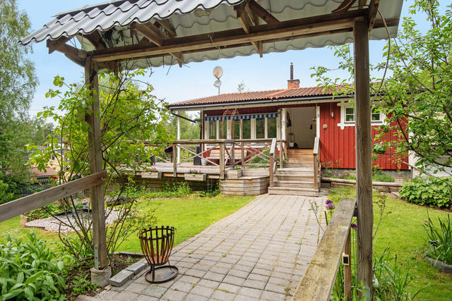 En oas nära Drevviken – med dubbelgarage, spabad och gästhus.