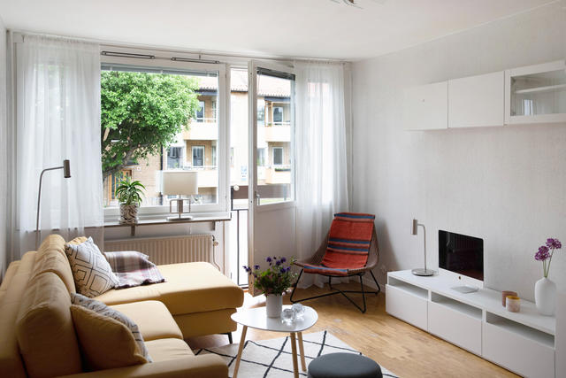 Charmig 2:a i Örby Slott – Balkong i soligt läge mot grönskande innergård