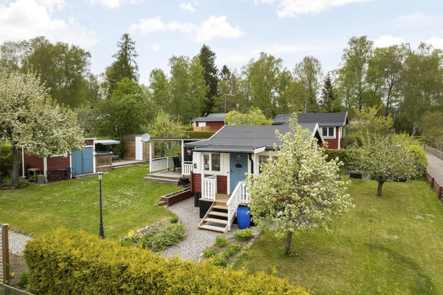 Välskött kolonistuga i Eklundsfältet – naturnära idyll endast 10 minuter från Södertälje