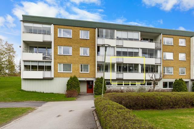 Renoverad tvårummare med entré i markplan och inglasad balkong en våning upp