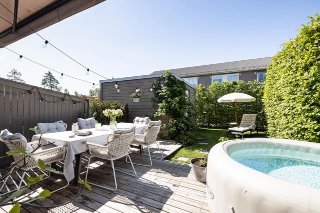 Fint radhus med mysig baksida med perfekt solläge i familjärt område