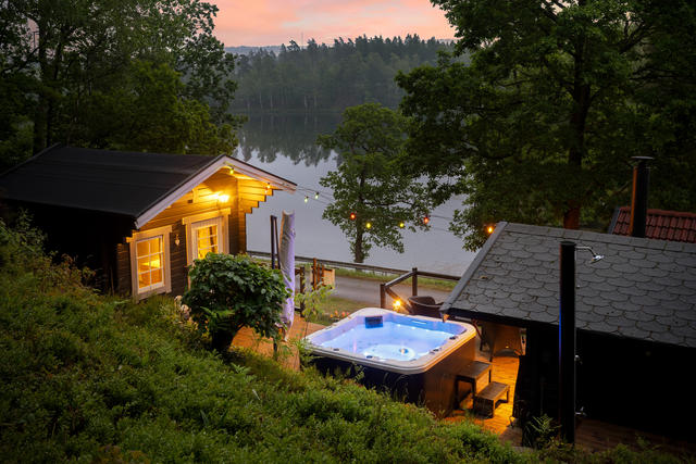 Sjönära året runt-boende med gäststuga, bastu och spabad precis vid Öjasjön!