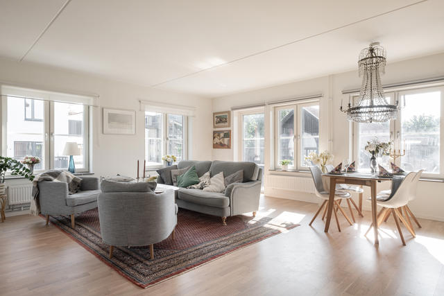 Stilsäker och ljus 3:a i nyskick – Två balkonger, hiss till garage och stadens puls runt hörnet!