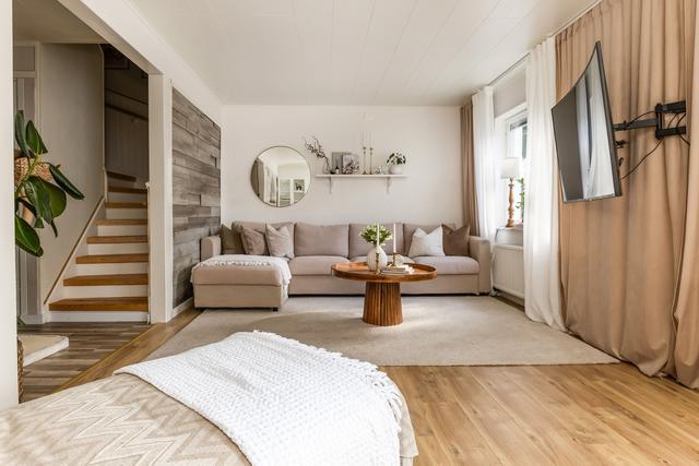 Renoverad fyra om 113kvm i två plan på Kyrkbacken.